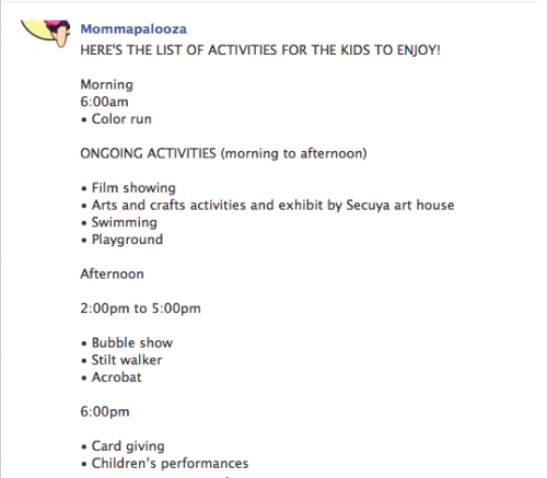 Color Marathon Ticket Inclusions: Your kids will have access to all the activities while Moms go around, shop and get themselves pampered. 🙂